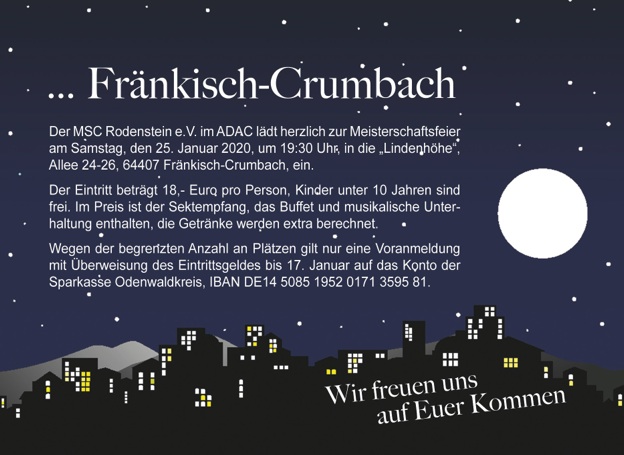 Der Motorsportclub Rodenstein e.V. im ADAC lädt zu seiner Meisterschaftsfeier