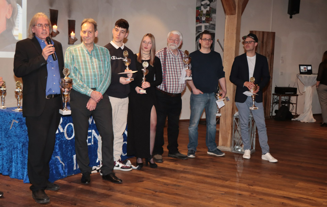 Der letzte Ehrungsblock des Abends galt der internen Clubmeisterschaft und wurde aus 6 verschiedenen Veranstaltungen ermittelt, die der Verein durchgeführt bzw. mitorganisiert hatte. Die besten 13 Platzierten wurde durch Sebastian Keller, Roger Böhm und Heinz Muntermann geehrt: